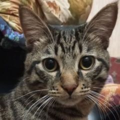 Пропал кот. В районе Театральной - Фрунзе. Окрас серый в черную полоску. Откликается на кличку - Киба. Возраст, на вид-1г 2 мес
