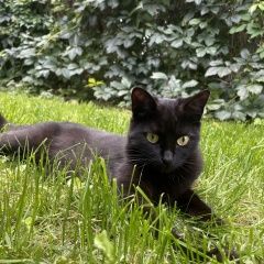 11. 12. 2025 рано утром ушла на прогулку и не вернулась, зовут Куки. Стерелизована. 2 года, черная, маленькая кошечка с желтыми глазами и длинными лапами. Очень пугливая, нервная и капризная, с трудным детством - подобрала котенком еле живую на обочине. Территориально: Село Домодедово, остановка Церковь (в сторону Подольска) и прилежащие улицы. Частный сектор.