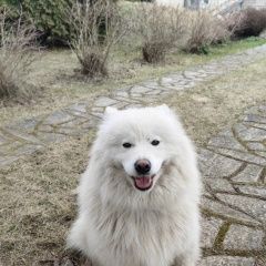 Найдена Самоедская собака, девочка, ласковая, спокойная, контактная. Похоже потеряшка, ищу хозяев.