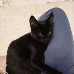 Черный кот с фиолетовым ошейником. По возрасту приблизительно 9-10 месяцев. Активное поведение. Просьба ко всем неравнодушным, если вы видели похожего кота или знаете, где он может находиться, пожалуйста, будьте добры сообщите нам. Для нас это очень важно. Буду очень благодарна за любую информацию