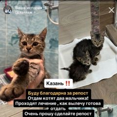 Отдам в добрые руки двух котят (два мальчика) очень любят друг друга Сердце разрывается, но я вынуждена искать дом для этих двух чудесных малышей. Недавно нашла их на улице - замёрзших, голодных и испуганных. Не смогла пройти мимо. Забрала домой, отогрела, на следующий день отвезла в ветеринарную клинику. Полностью проходят обследование Оба котёнка - мальчики, очень привязаны друг к другу, как настоящие братья. Один смелый и заботливый, второй - спокойный и ласковый, постоянно тянется к старшему. Всегда спят вместе, мурчат, обнимаются - очень трогательная парочка. Разлучать их невозможно, они друг без друга не могут. Себе оставить очень хочу, но у меня уже есть кот, и с ними в квартире будет трое - для нас это, к сожалению, перебор. Поэтому ищу самых добрых, ответственных людей, которые смогут полюбить их и подарить им уютный, безопасный дом. Могу привезти лично, если вы из моего города или рядом. Очень хочется иногда получать весточки, как у них дела. Если вы давно мечтали о двух пушистых комочках любви - вот они. Просто посмотрите на фото. сейчас проходят полное обследование и лечение, как ветеринар скажет что можно забирать сразу напишу, буду очень благодарна если поделитесь другим