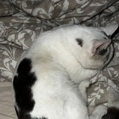 В ночь на 19. 09 обнаружили в подъезде кота, который проворно зашел в квартиру и расположился на кровати, тут же замурчав. Явно домашний, очень ласковый маленький котик