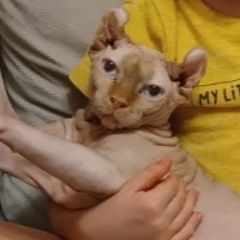 Москва ЮАО Бирюлёвская улица дом 1к3 Пропал кот 24. 05. 25 Кот. Порода сфинкс. Откликается на кличку Пикарт. Кастрирован. Ласковый, контактный, ориентирован на людей. На правом бедре шрам. 6 лет.. Анастасия