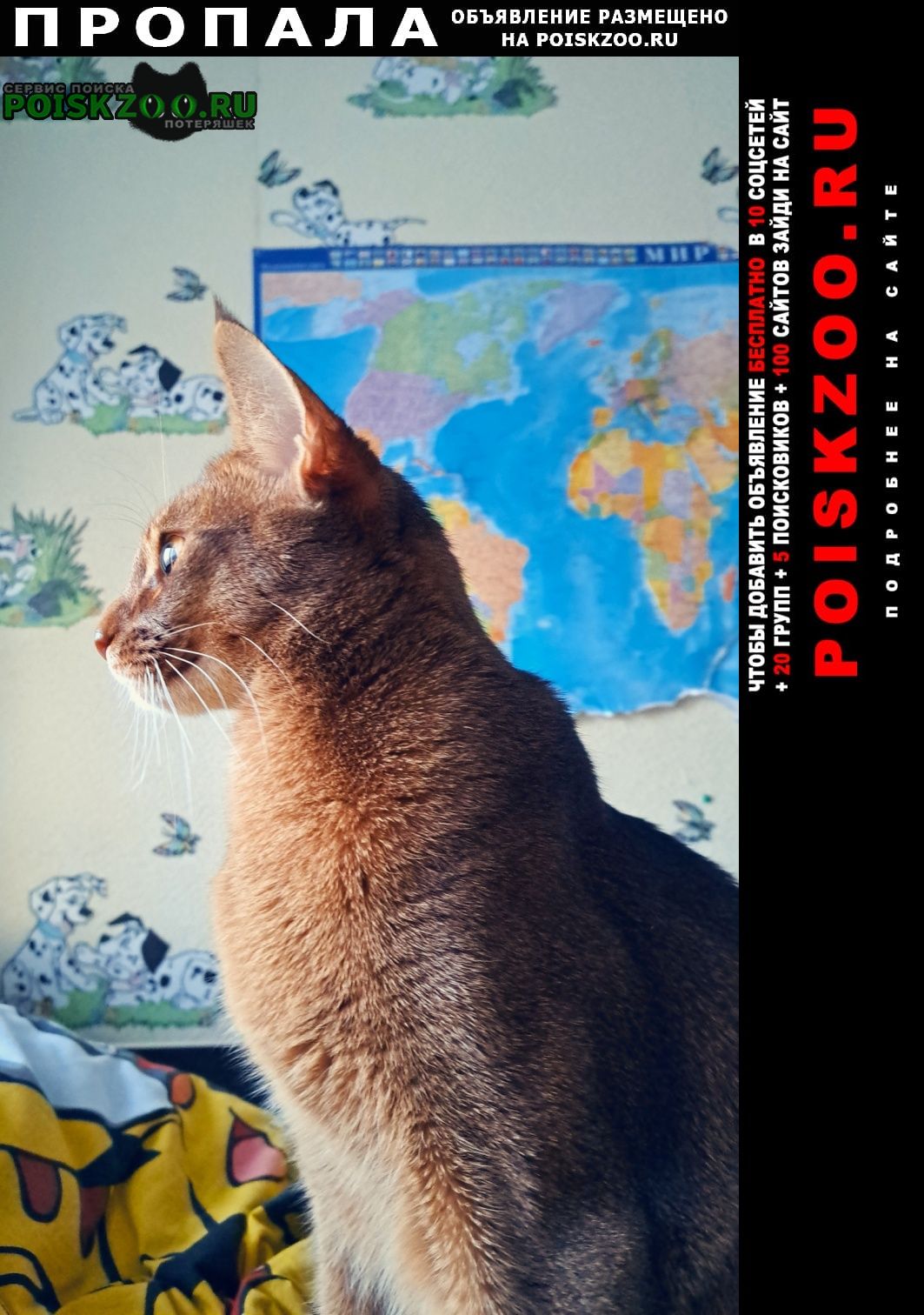 Объявление о том, что пропала кошка размещено в соцсетях: