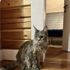 28. 03. 2026 найдена кошка в СНТ Павловское-1 г. Павловск, серая девочка Мейн-кун около 3-х лет. Домашняя, ходит в лоток. Исхудавшая.