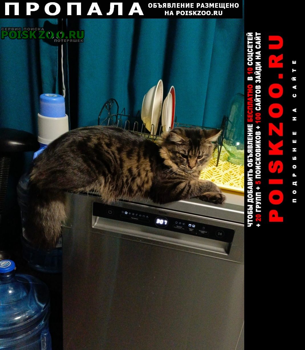 Пропал кот, крупный, пушистый, серого цвета, к чужим идет неохотно.