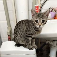 Пропал котенок девочка серо-полосатый. Кличка Клио. Огромные красивые глаза. Очень шустрая, но пугливая. Мелкая, худенькая. Выбежала, вероятно, утром, когда все уходили на работу-в школу. Ул. Лёни Голикова